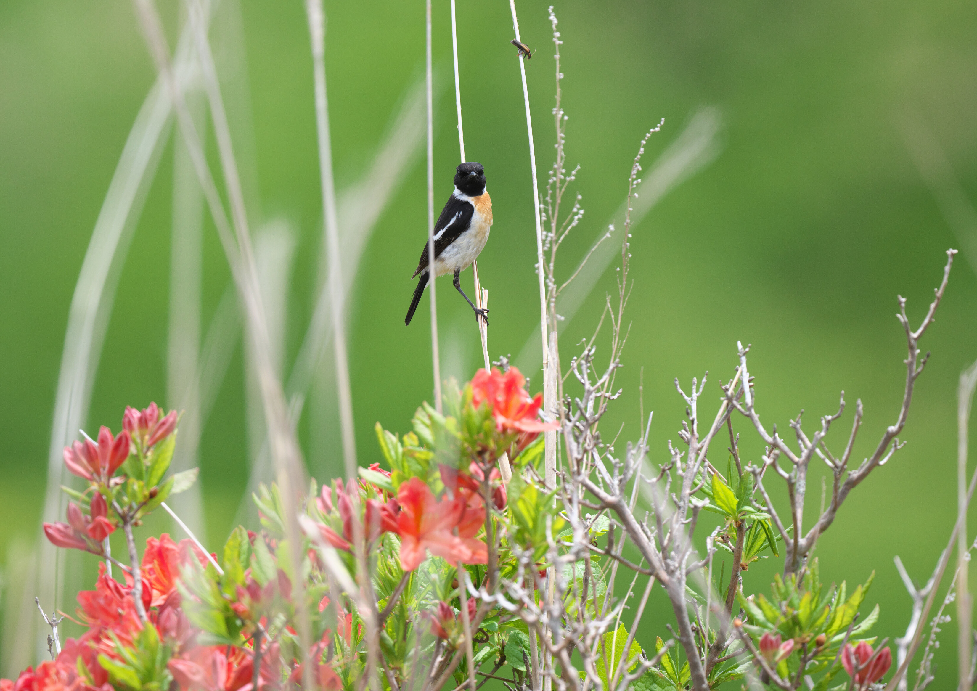 June 11, 2023 高原のお花畑 (6月10日 ノビタキとレンゲツツジ) 毎年恒例のノビタキ詣で。そろそろレンゲツツジが見頃です。まずはホオアカが花にとまってくれました。本命のノビタキ・・・花の近くに飛び込んでも、花にはとまってくれません(泣 「ノビタキ Siberian Stonechat」カテゴリの最新記事